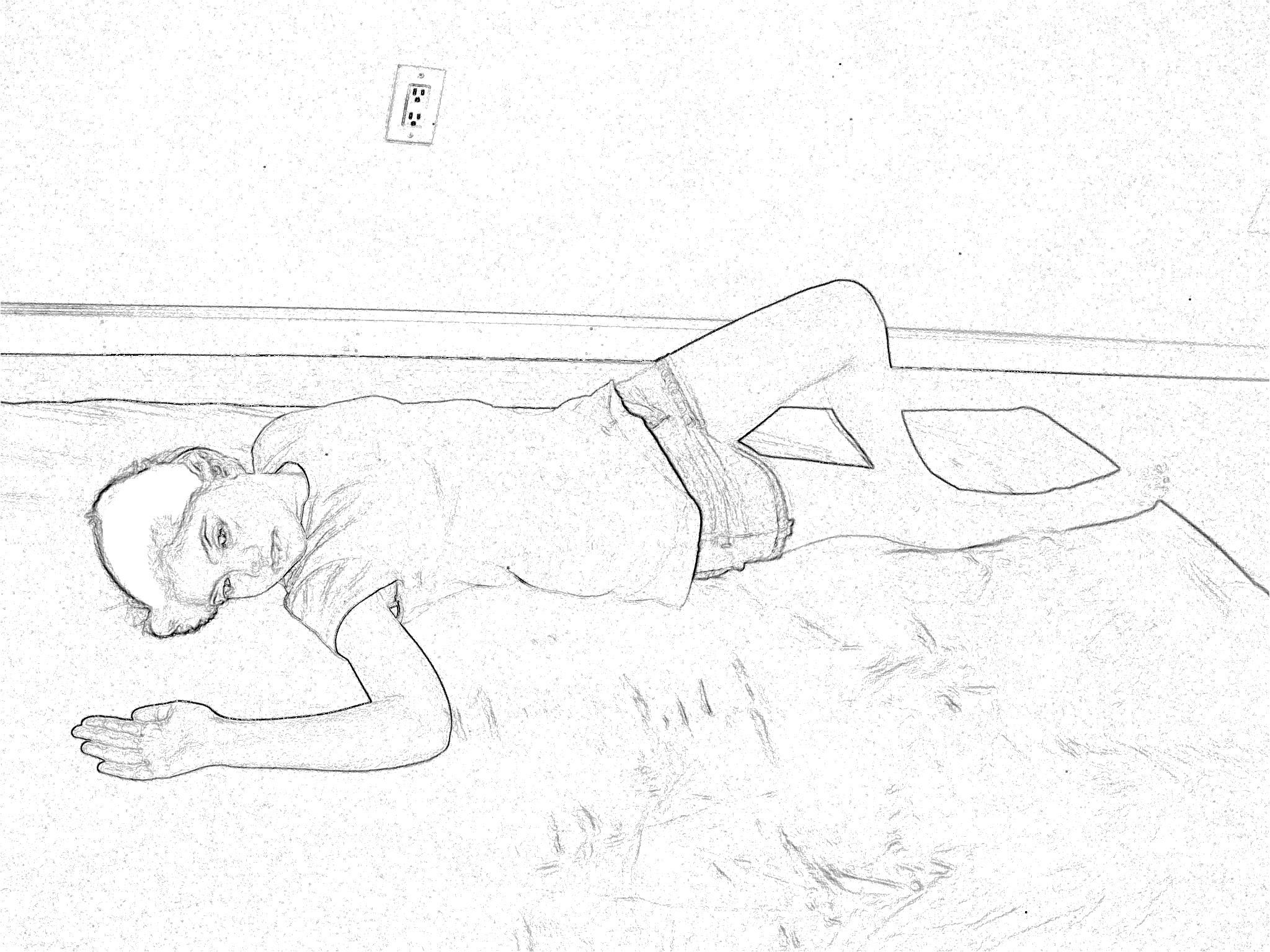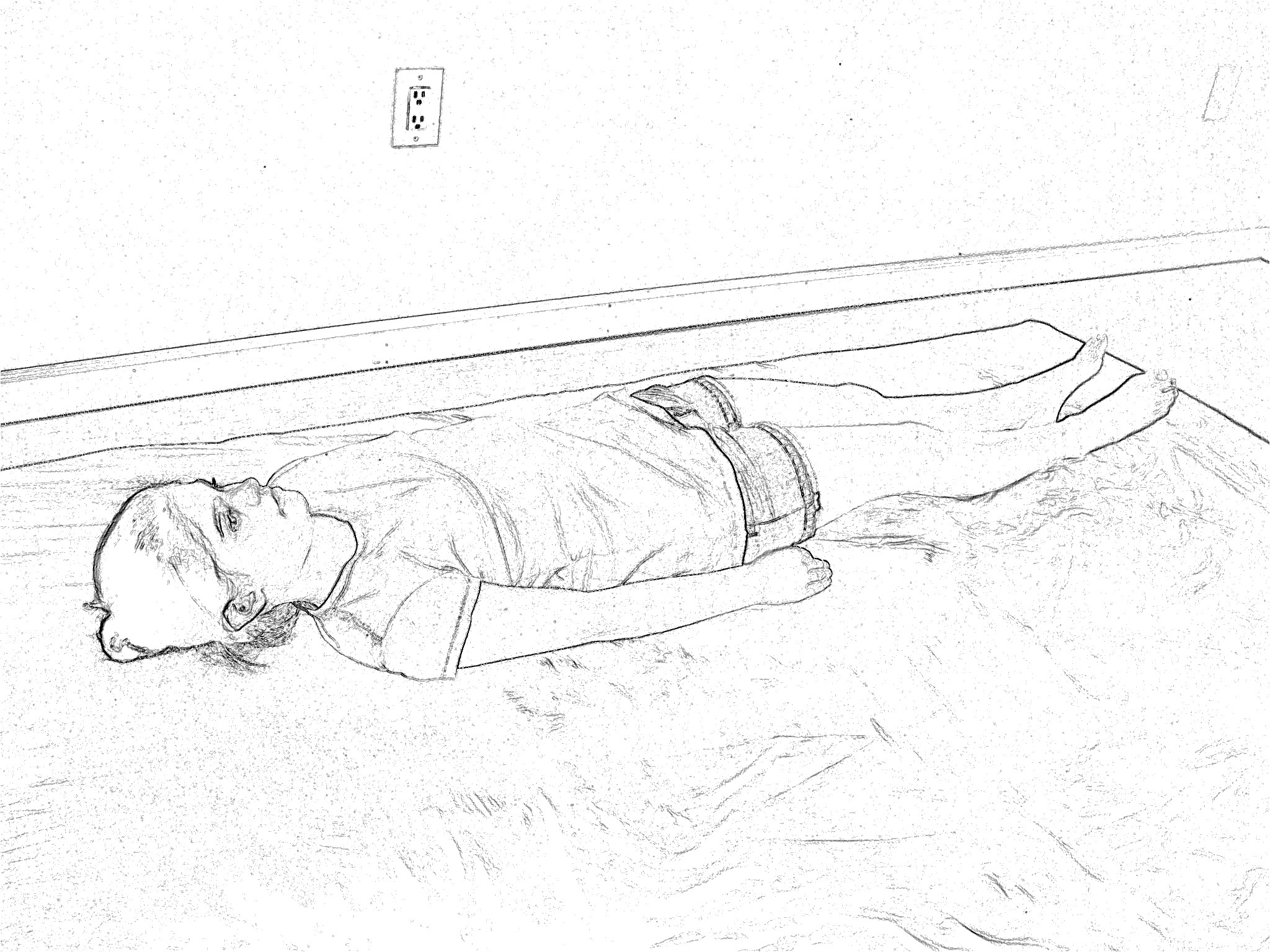 2. Turn head to right, with chin parallel to shoulder. As the head is turning, bend left leg (knee is up in the air) and bend right arm (arm is on the floor) until hand is at the same level as the head (Figure 2). Focus eyes on thumb.