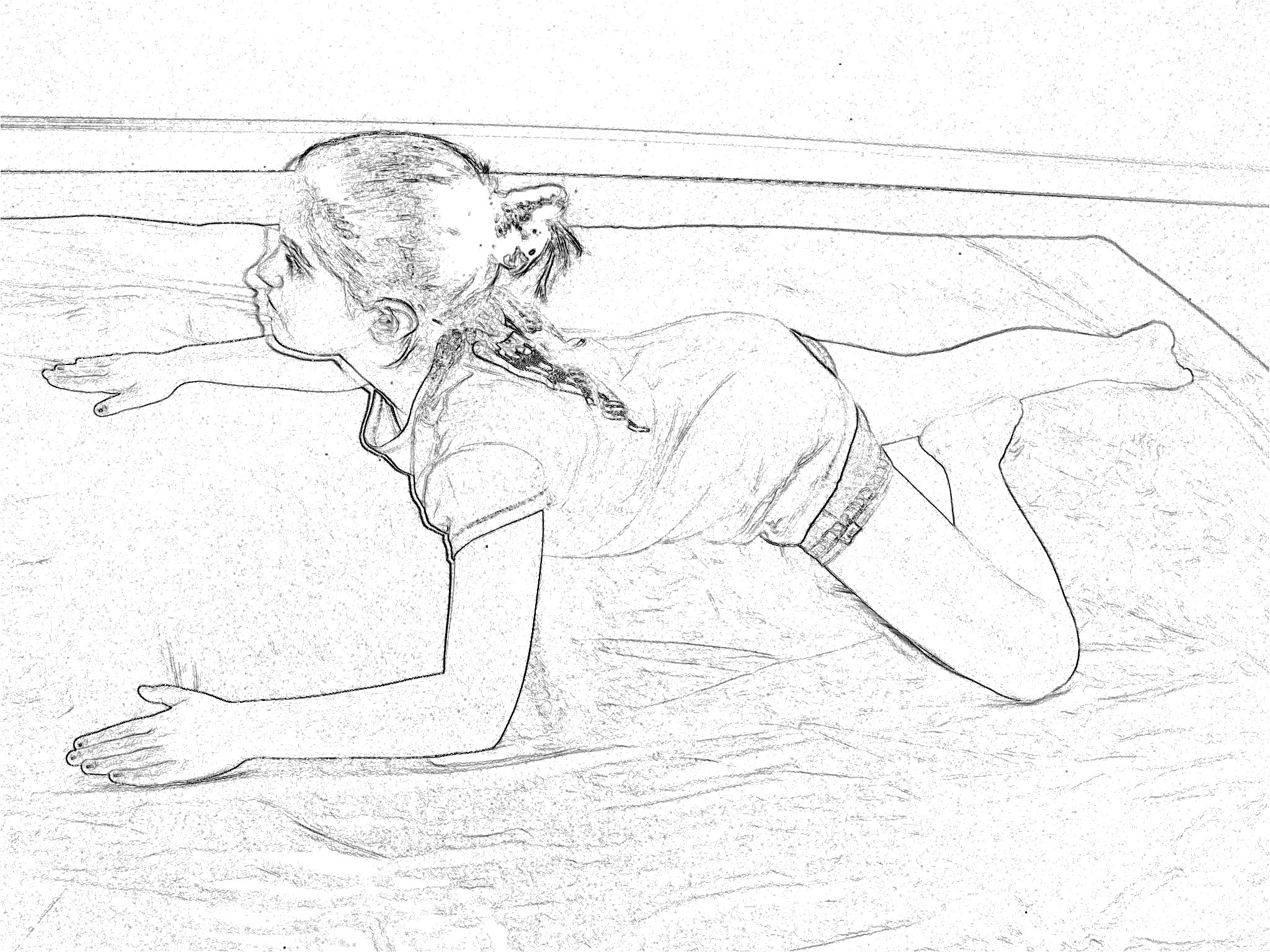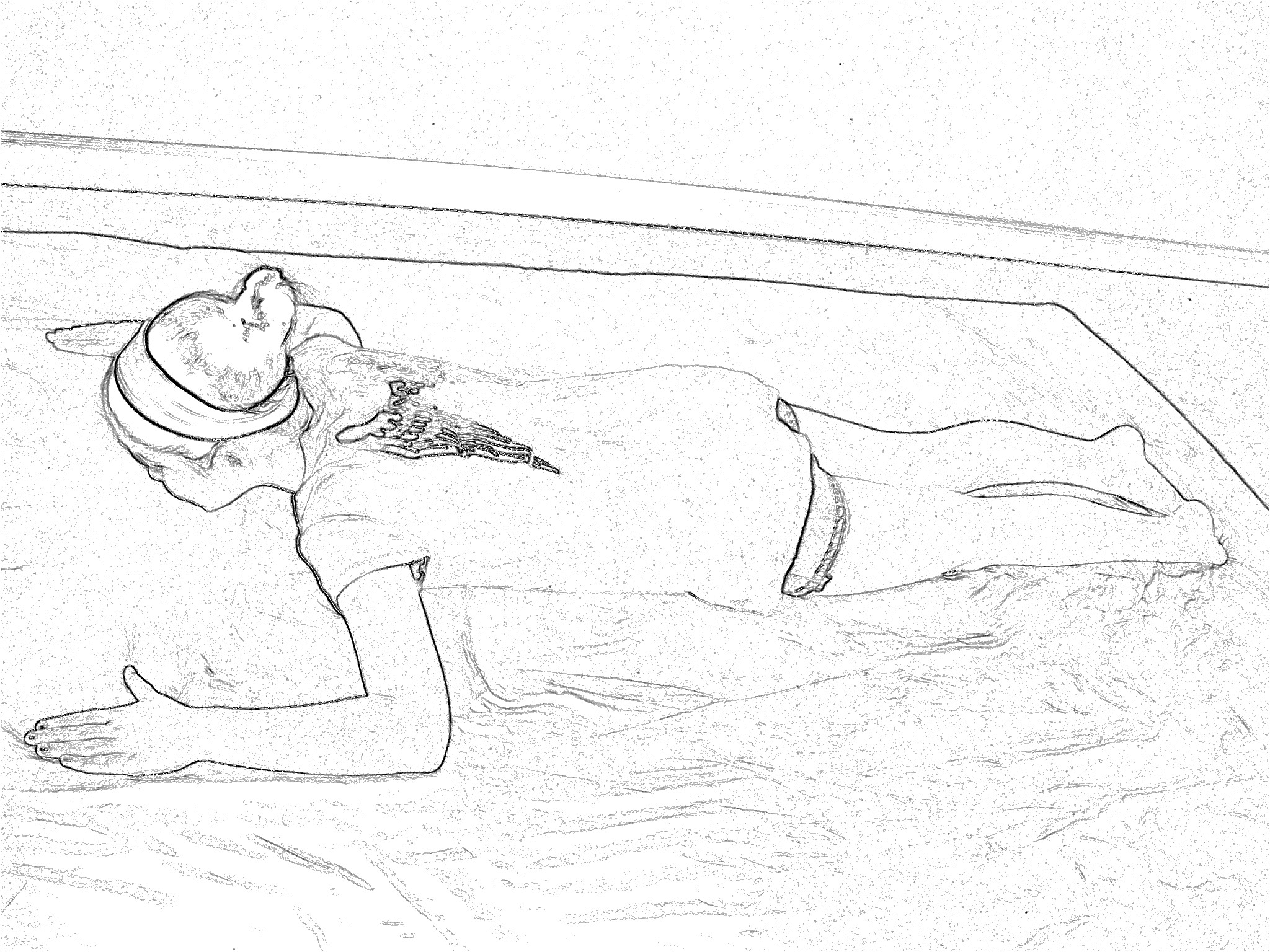1. Lay on floor on the stomach. Legs are straight; arms are bent, with elbows next to the sides. Fingers are together, thumbs pointed inward (Figure 1).