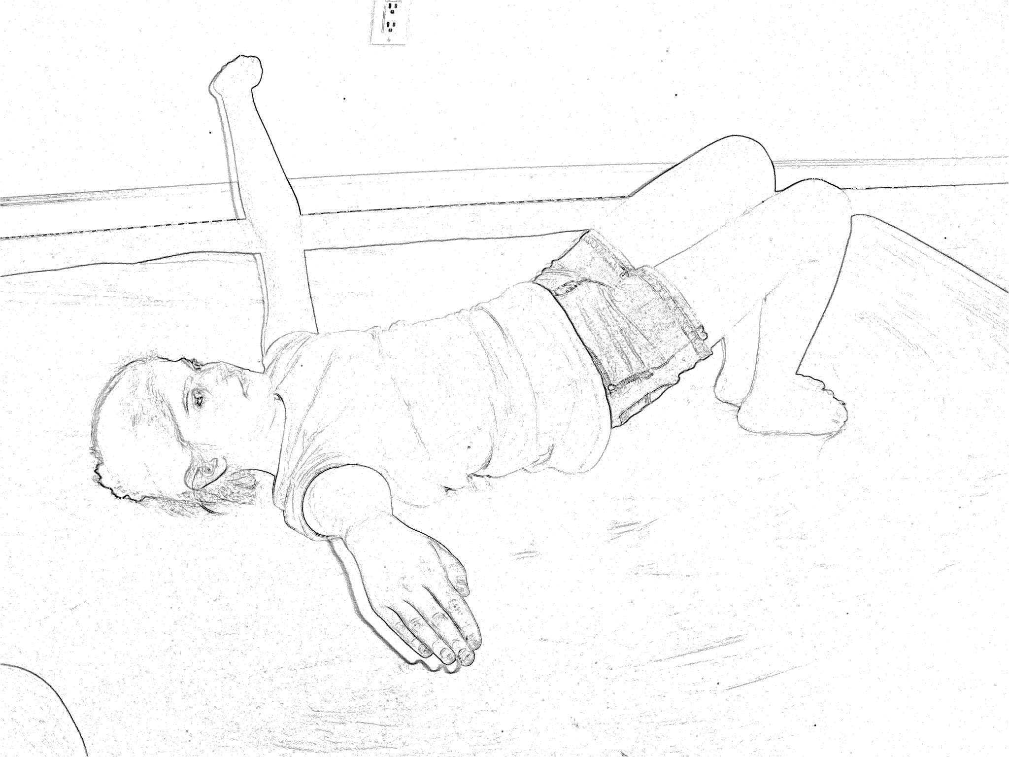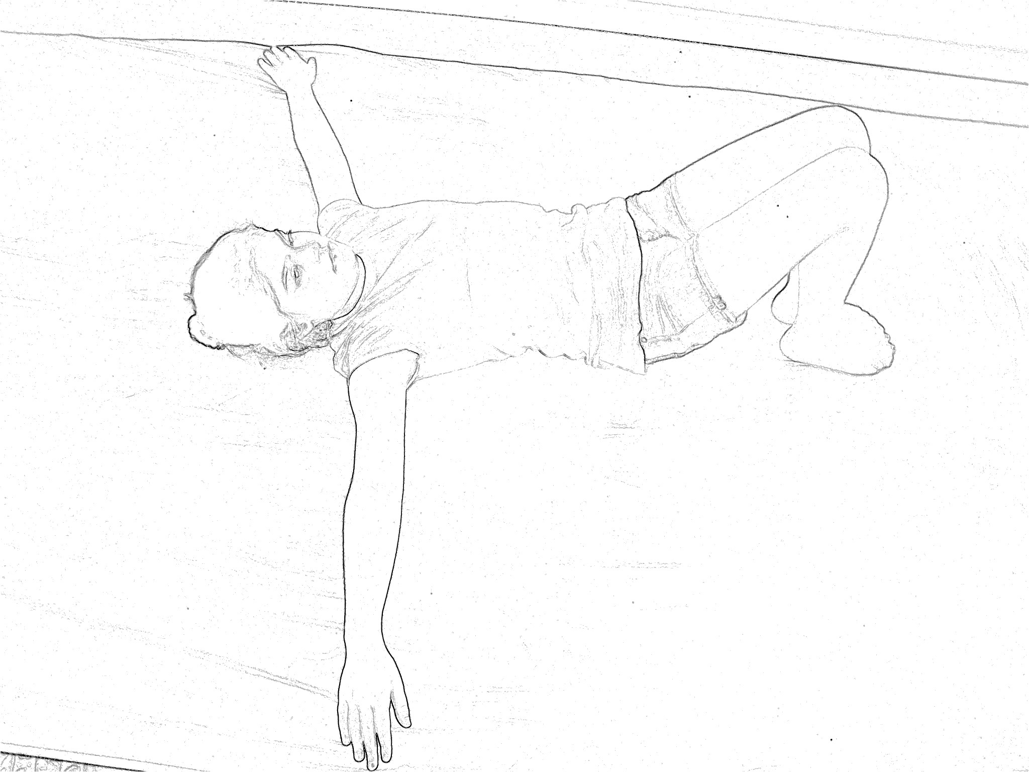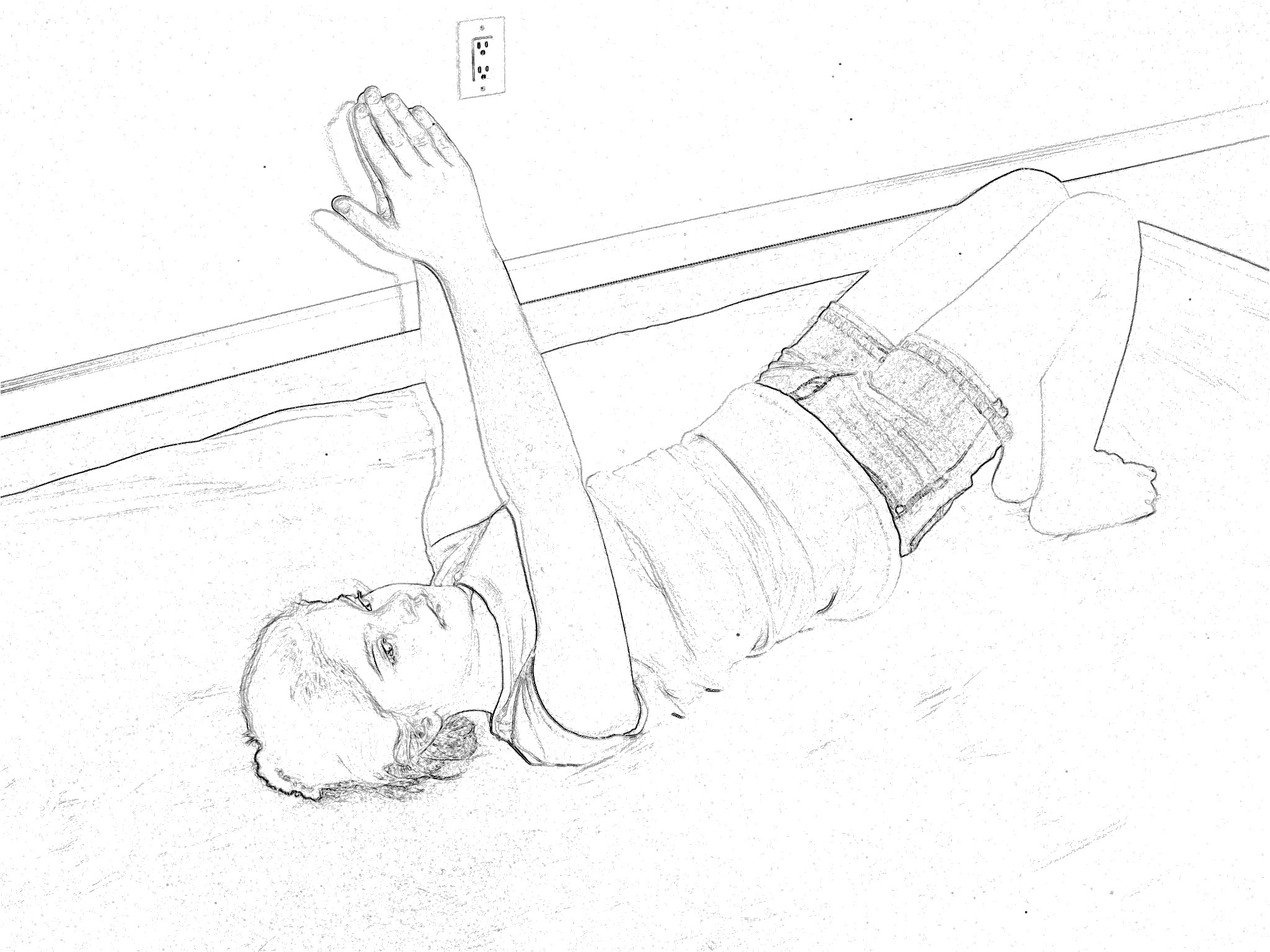 1. Exhale with force through the mouth, making a “whoosh” sound, as you push hands up toward the ceiling and then outward to the floor (Figures 3 and 4). Slowly lower body back to floor as you quickly continue exhaling, back to starting position.