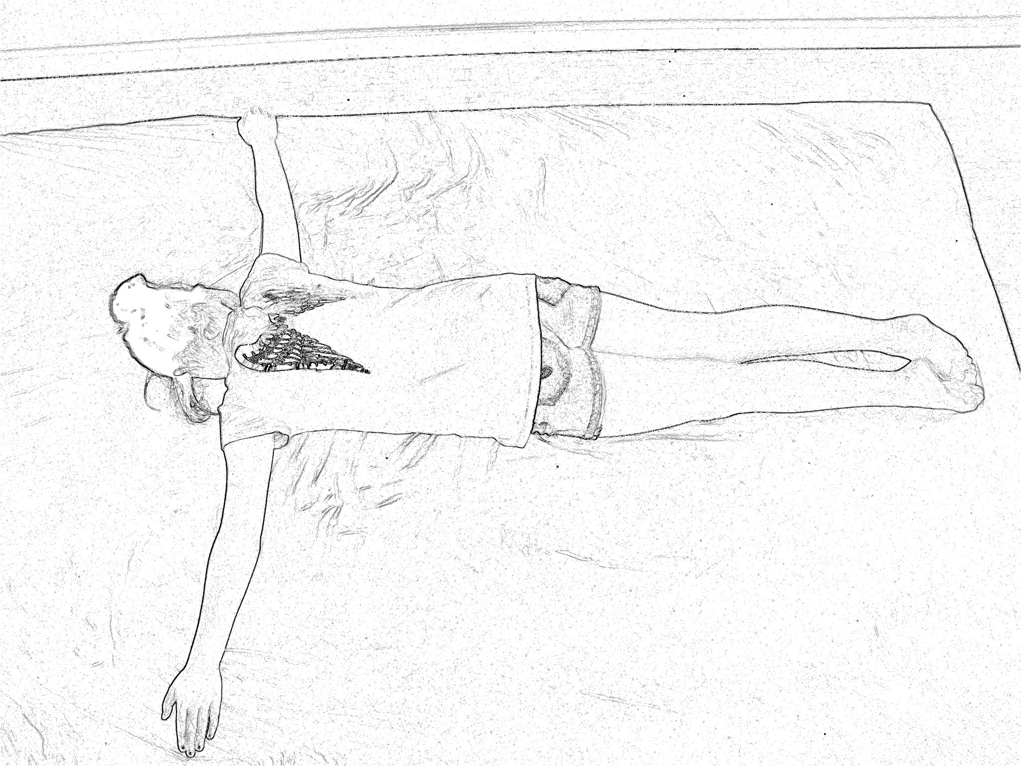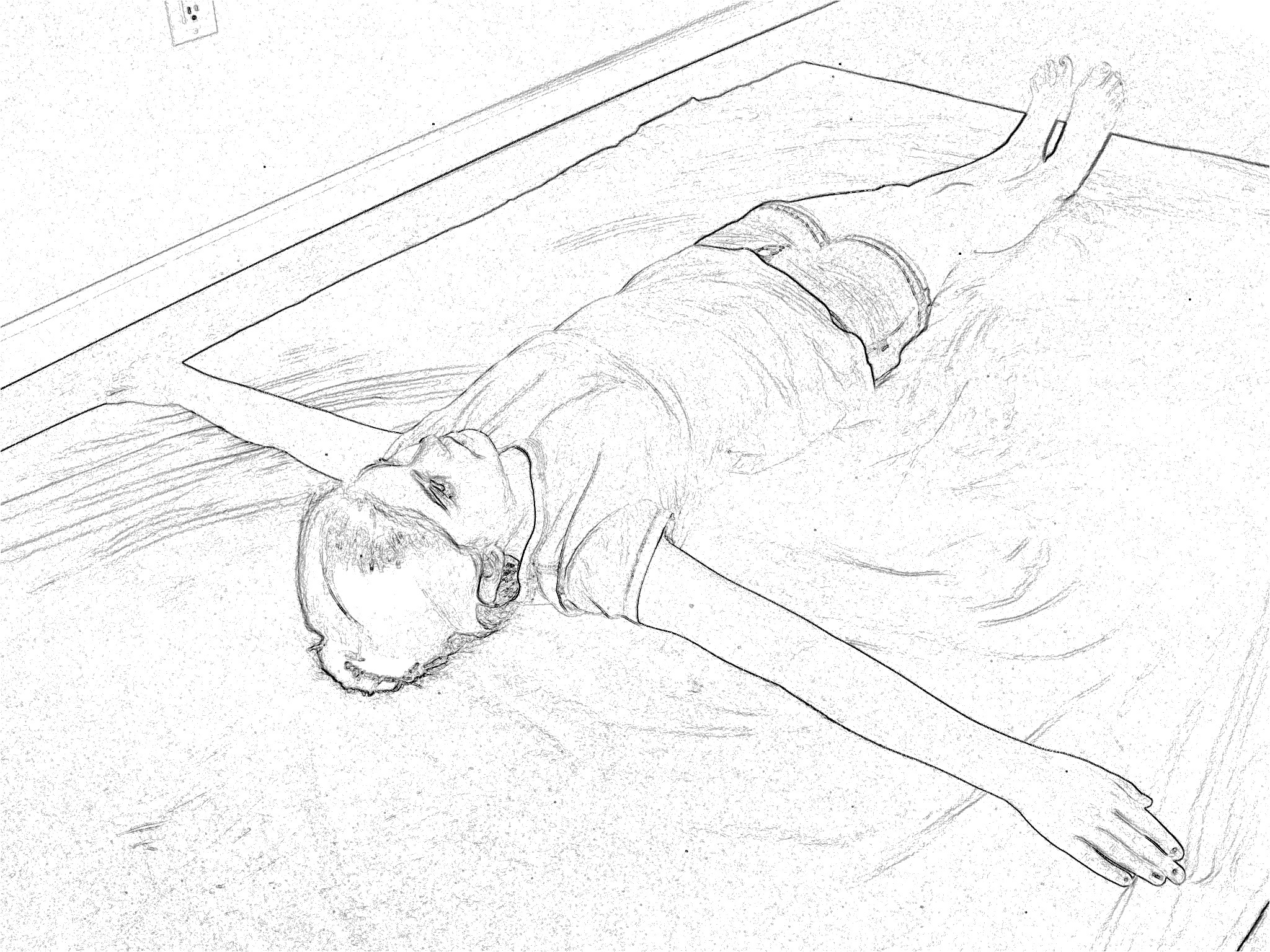 1. Lay on back in “T” position, with arms out to side, palms facing ceiling, legs straight and relaxed with toes pointed to ceiling. (Figure 3).