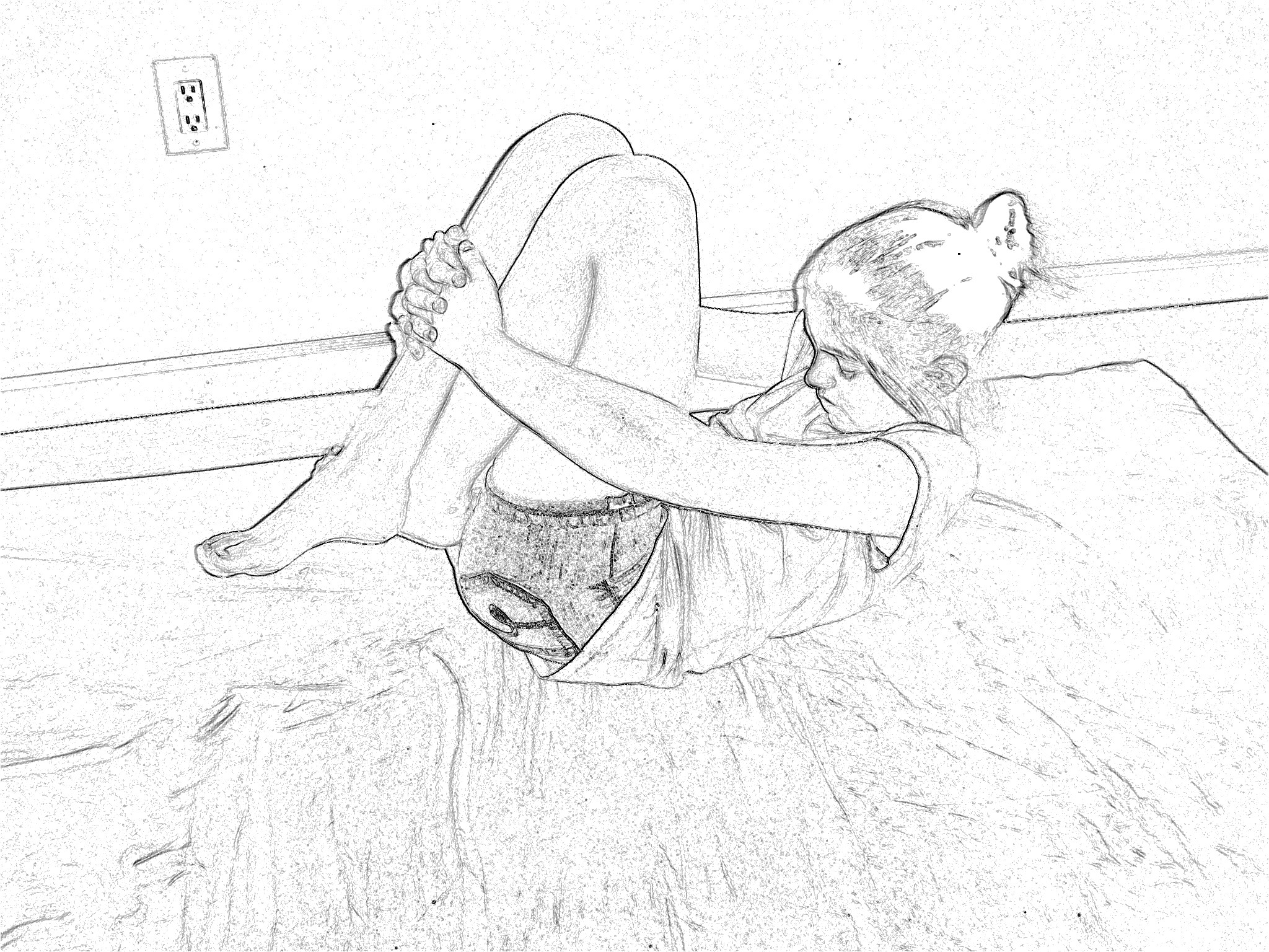 1. Lie on back. Curl up into a ball, wrapping arms around legs in “meatball” position (Figure 1). Shoulders may need to be supported by another person at first.