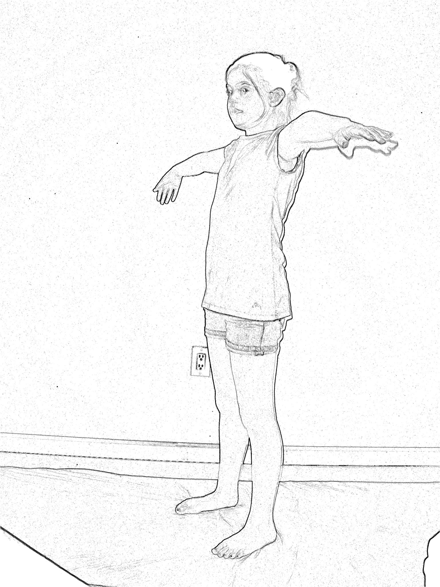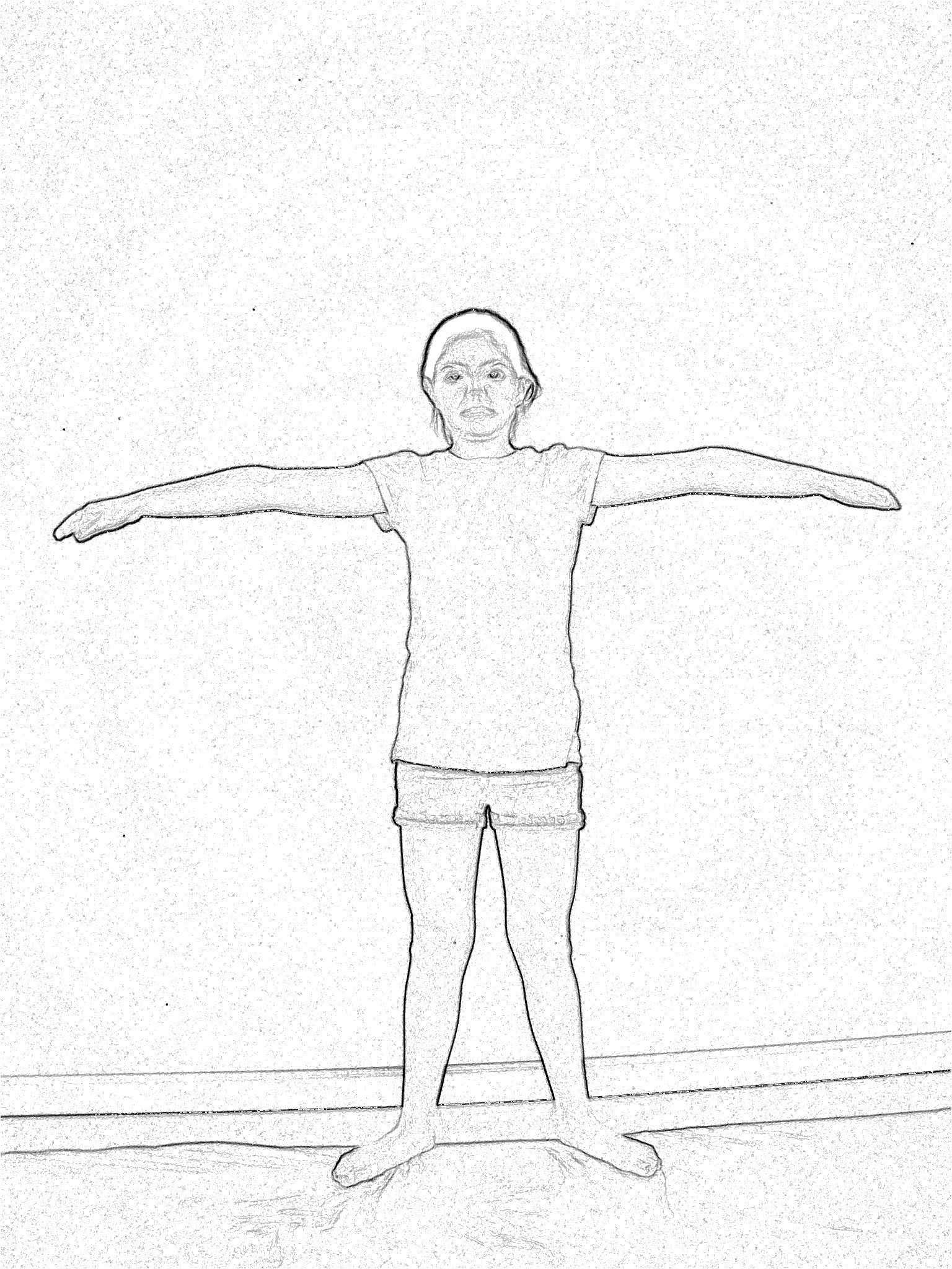 1. Stand with arms extended out to the sides (Figure 1). With eyes open, slowly turn around in a complete circle (Figure 2), returning to the original position.